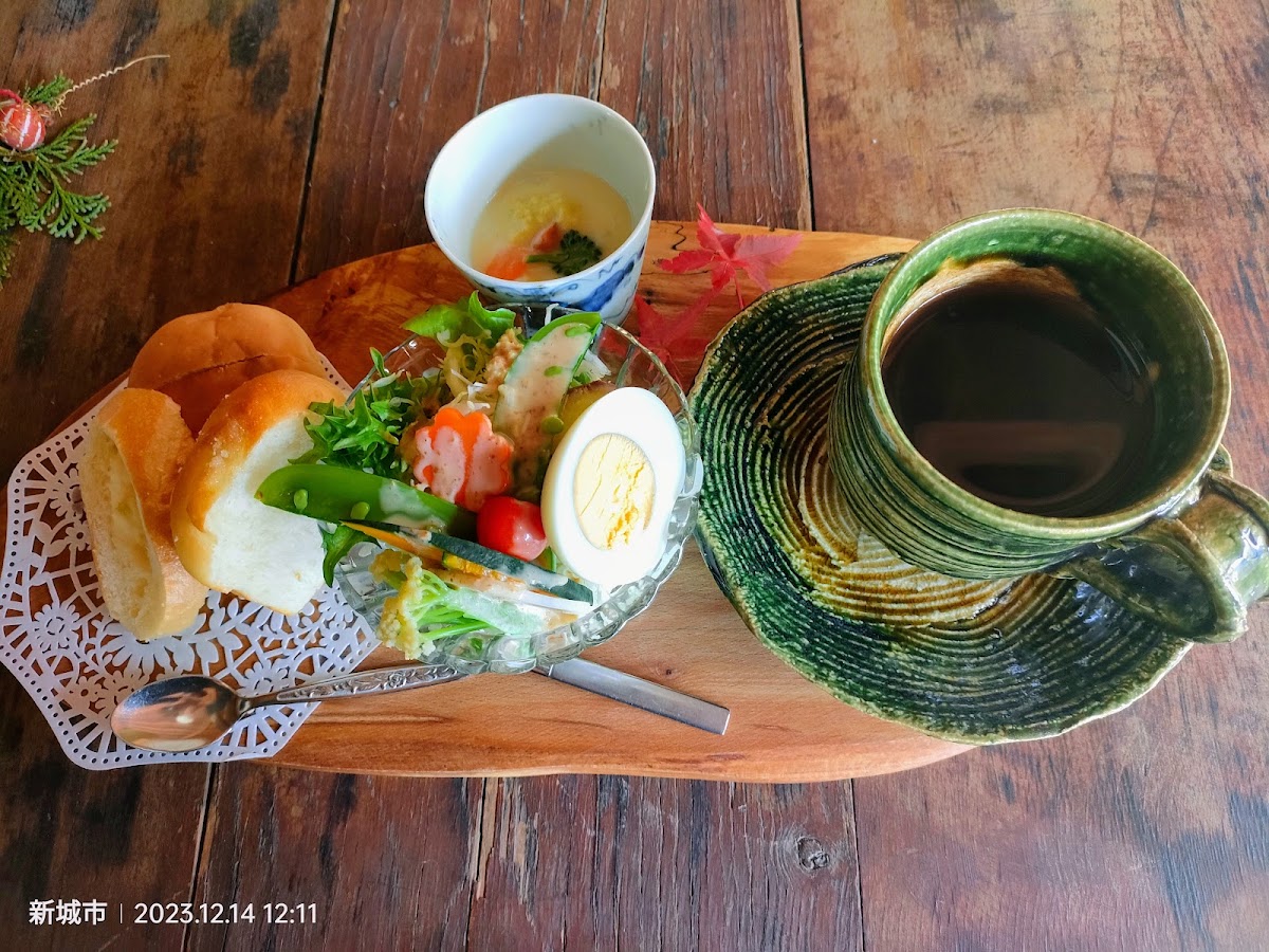 The café's interior boasts a rustic charm, with its earthen floor and a layout that fosters a relaxed vibe, ideal for savoring a leisurely meal or a quiet cup of coffee. Whether you prefer basking in sunlight at a table or lounging in a cozy tatami corner, the views of the tranquil rural landscape from every seat keep you in touch with nature's simplicity.